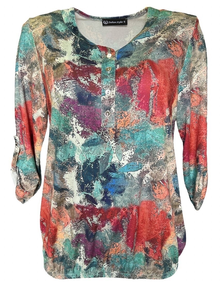 - Het shirt is gemaakt van 60% viscose, 35% polyester en 5% elastan.