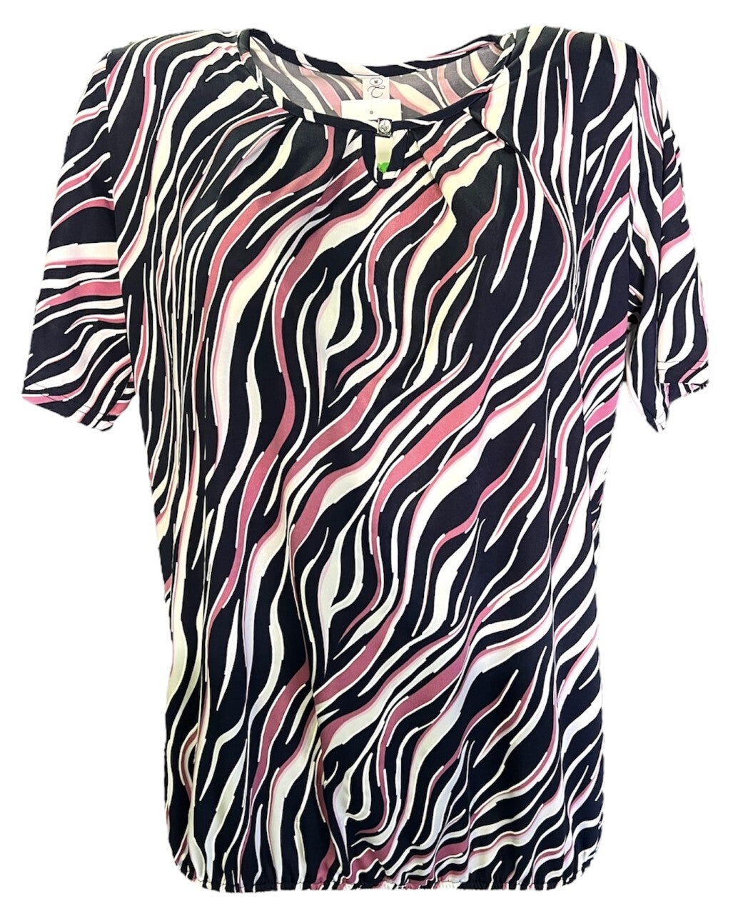 Het shirt is gemaakt van 60% viscose, 35% polyester en 5% elastan.